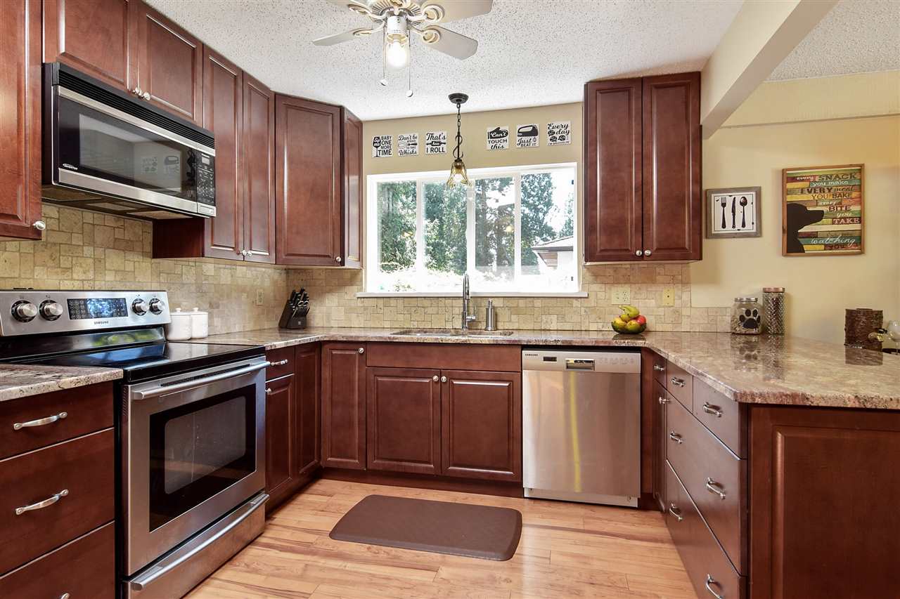 Split 2,800 sq ft home on ¼ acres in Brookswood. West coast contemporary home features vaulted ceilings, updated kitchen and floors and a fully finished basement w/wet bar and large deck upstairs off of the family room. Close to Bell park situated on a great street; 2 bedrooms up easily can be converted to 3 bedrooms, additional bedroom downstairs makes for easy in-law accommodations. Gated, has a double car garage and RV parking available.